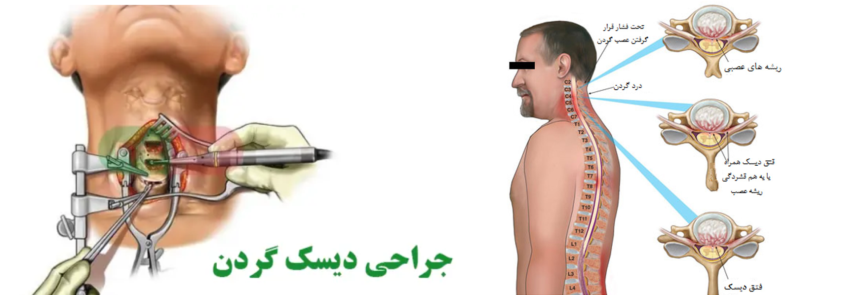 جراحی دیسک گردن معمولاً کمعارضه و با حداقل درد انجام میشود و برش از جلوی گردن داده میشود. در موارد اورژانسی مانند ضعف شدید عضلانی یا اختلال در کنترل ادرار و مدفوع، انجام جراحی فوری ضروری است.